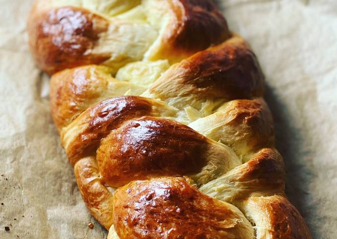Typically, Hefezopf is a loaf consisting only of a braid; and the main ingredients for this traditional bread are sugar, flour, butter, eggs, yeast, and sometimes raisins or almonds. You can serve Hefezopf with German butter or a delicious jam for a beautiful breakfast treat or mid-day snack. Or you can just eat it plain. Mutter. Hefezopf könnte eines der köstlichen Menüs sein, um mit der Familie zu essen. Keine Angst vor Schwierigkeiten, denn ein gesundes Menü zuzubereiten dauert nicht lange. Das Rezept ist einfach und die benötigten Zutaten sind leicht zu finden. Du kannst kochen Hefezopf using 7 zutaten und 6 zubereitung. So erreichen sie das.